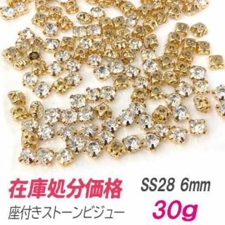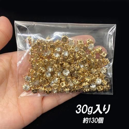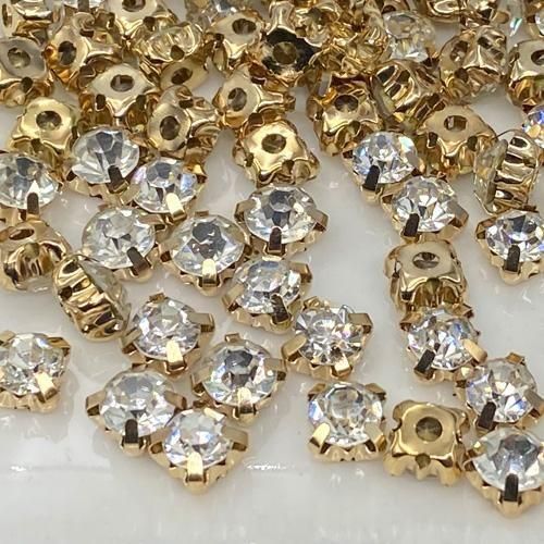 在庫処分 座付き A級ガラス ビジュー ストーン ガラスストーン ビーズ 穴あり ゴールド ss28 6mm 30g stone47