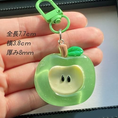 グリーンアップル キーホルダー リンゴ りんご 林檎 青リンゴ 果物 キーリング【keyring-24 B】1個