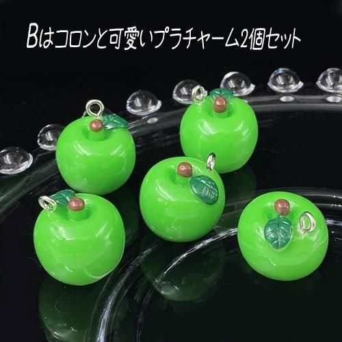 グリーンアップル 青リンゴ 林檎 リンゴ りんご アップル プラチャーム 秋 アクセサリーパーツ【j6-5135 B 2個】