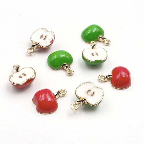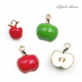 りんご チャーム アップル 青リンゴ 赤リンゴ 林檎 リンゴ フルーツ 果物 金属チャーム 秋 アクセサリーパーツ 2個 j6-5139