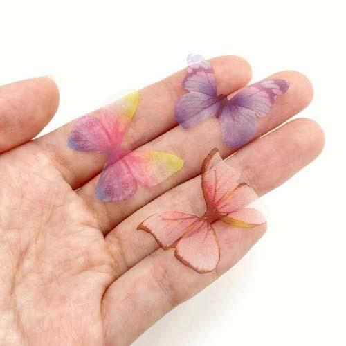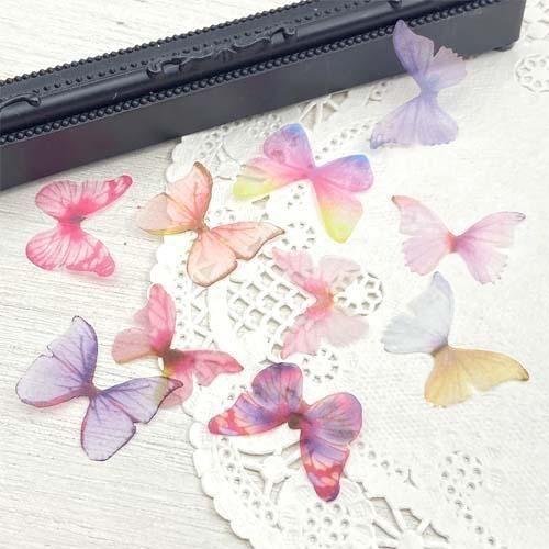 リアルなバタフライモチーフ 10個 蝶 モチーフ オーガンジー 蝶々 レジン アクセサリーパーツ motif374 GreenRoseYumi