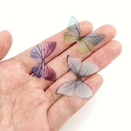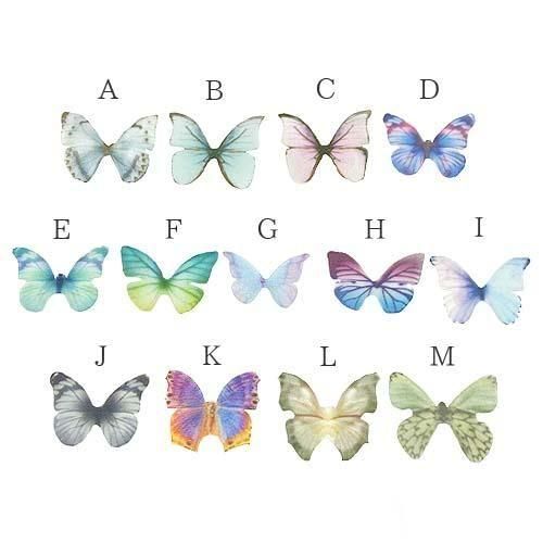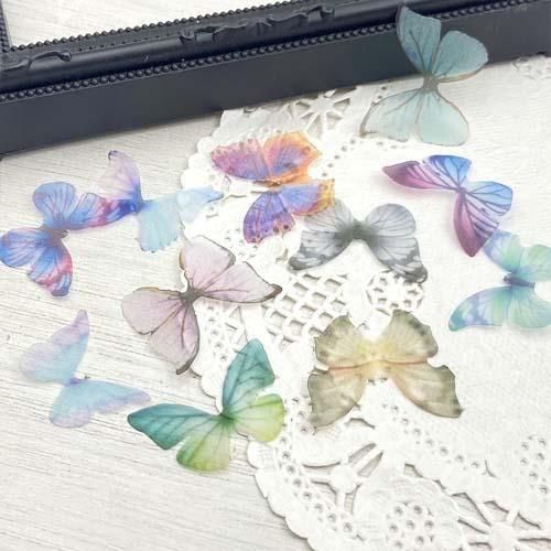 リアルなバタフライモチーフ 10個 蝶 モチーフ オーガンジー 蝶々 レジン アクセサリーパーツ motif375 GreenRoseYumi