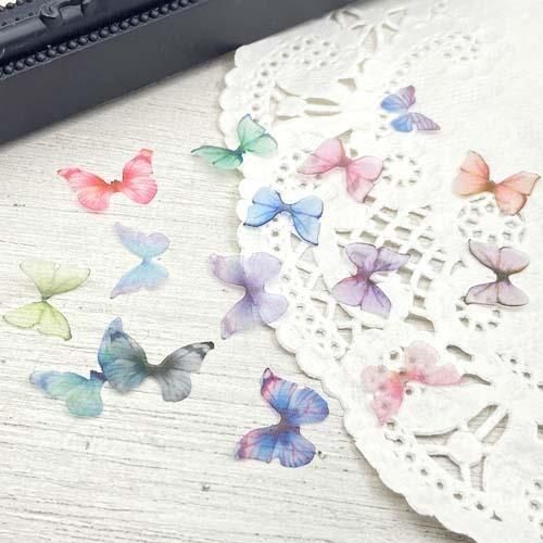 リアルなバタフライモチーフ 10個 蝶 モチーフ オーガンジー 蝶々 小さめ レジン アクセサリーパーツ motif376 GreenRoseYumi