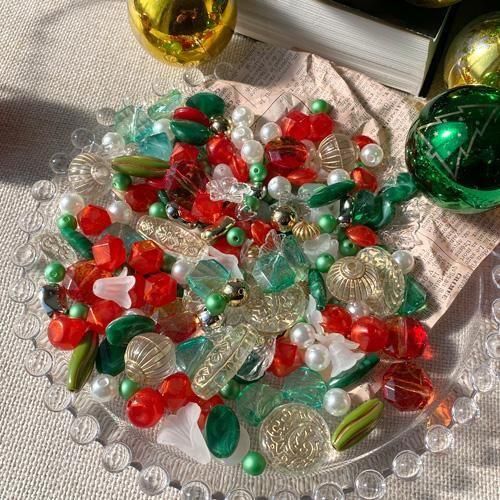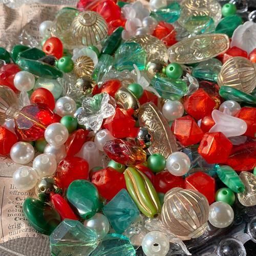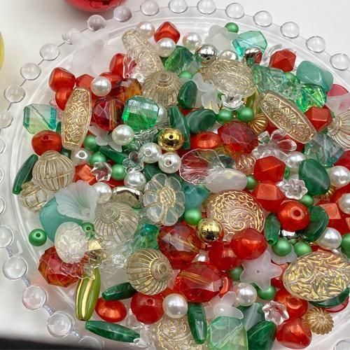 クリスマスカラー ビーズミックス アクリルビーズ プラスチックビーズ ビーズ Xmas ハンドメイド 手芸 アクセサリーパーツ 100g beads552