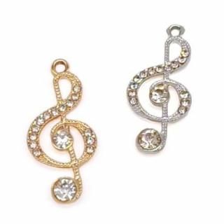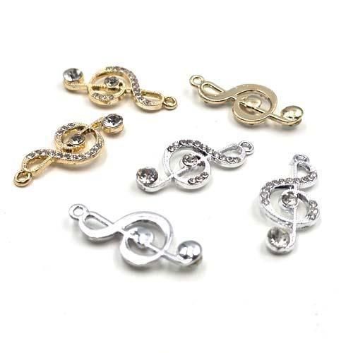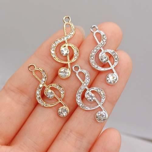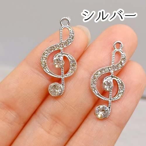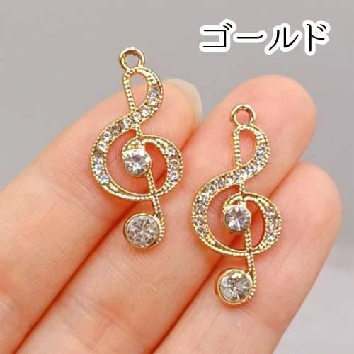 音符 おんぷ チャーム ゴールド シルバー 金属 音楽 吹奏楽 ト音記号 部活 ガラスストーン メタルチャーム アクセサリーパーツ 2個 j6-5115 GreenRoseYumi