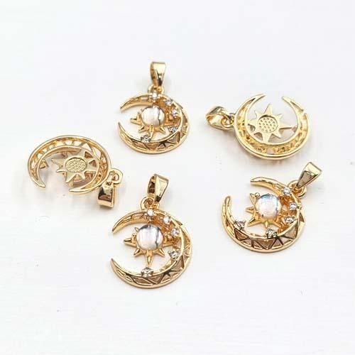 月 ムーン チャーム 星 スター 1個 ゴールド ストーン ブライトスター ハンドメイド アクセサリーパーツ gp-760 GreenRoseYumi