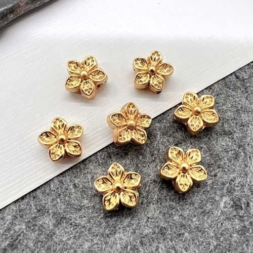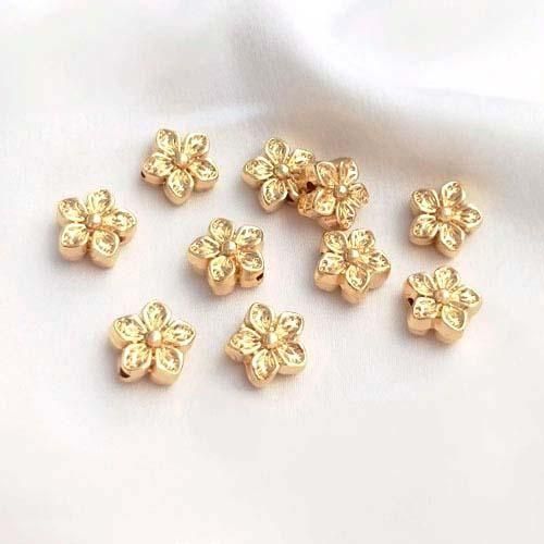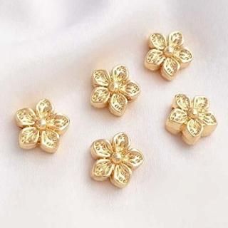 真鍮製ビーズ 18kgp フラワー 桜 さくら サクラ 春 ゴールド アクセサリーパーツ 高品質 メタルパーツ 2個 ym9-0191 GreenRoseYumi