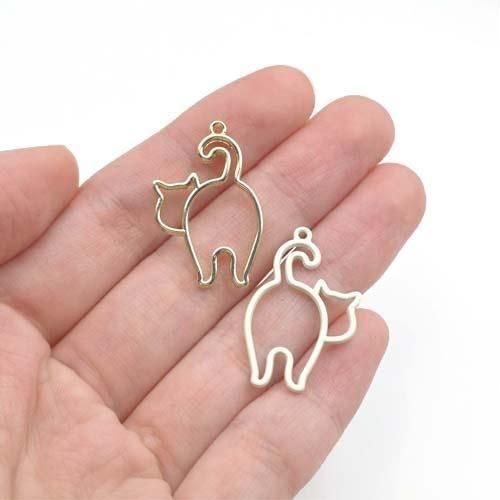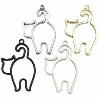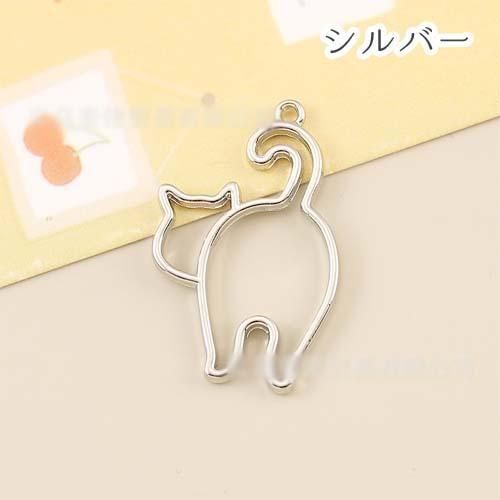 金属 チャーム フレーム ネコ 猫 ねこ 振り向き 3個 レジン枠 キャット にゃんこ チャーム アクセサリーパーツ j6-5146 GreenRoseYumi