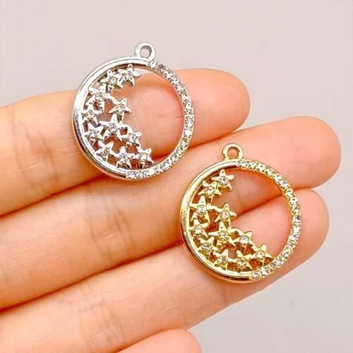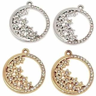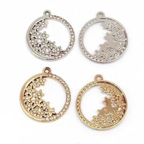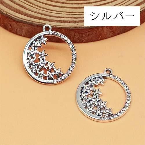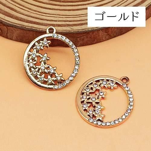 ラウンド チャーム 星 スター 2個 ゴールド シルバー ストーン ハンドメイド アクセサリーパーツ gp-758 GreenRoseYumi